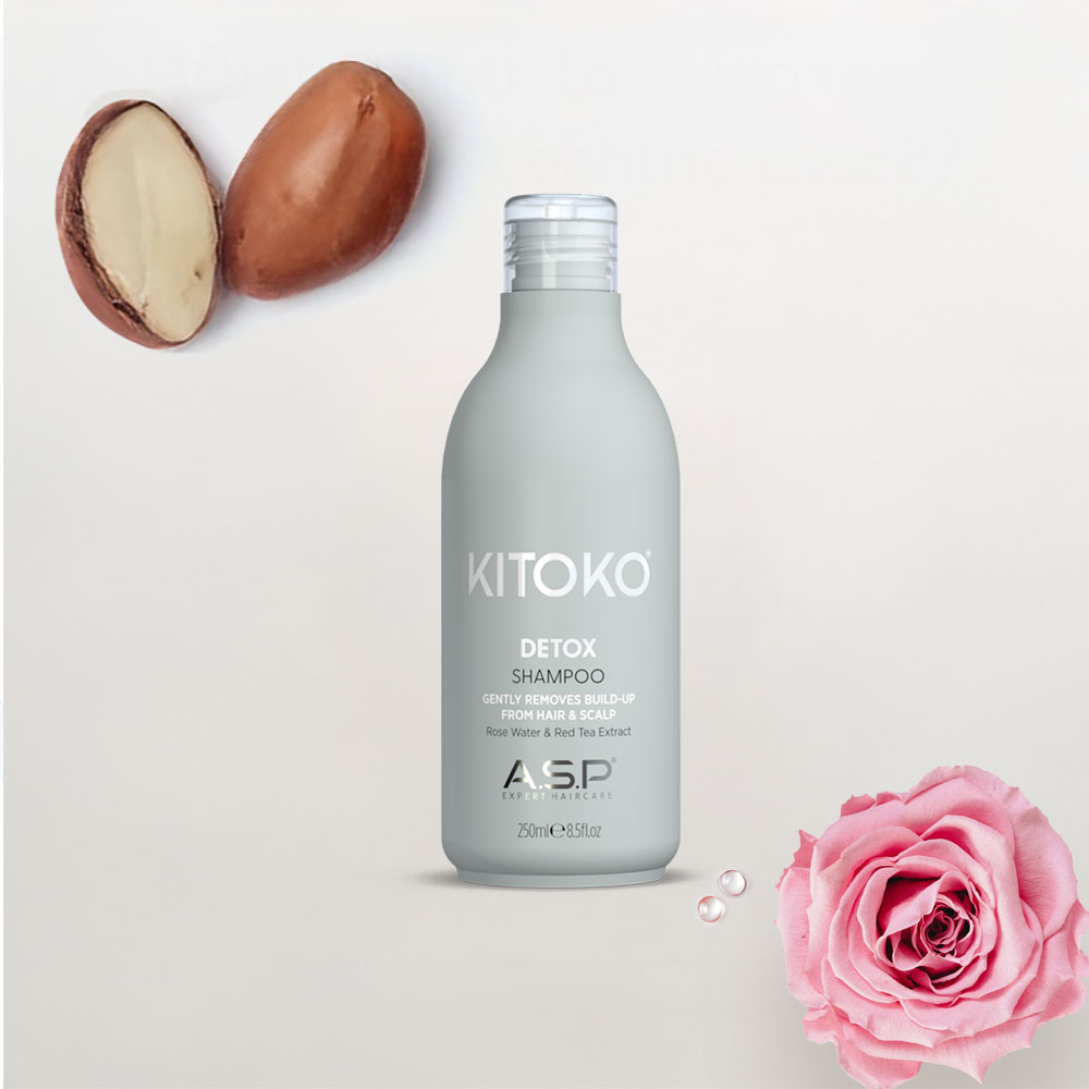 Odstraňuje usadeniny z vlasov a pokožky hlavy. Očistite, osviežte a resetujte svoje vlasy s ASP Kitoko Detox. Mestský život, stylingové produkty a minerály môžu zanechať vlasy ťažké a zaťažené. Táto detoxikačná línia je obohatená o vodu z ruže a extrakt z červeného čaju, ktoré jemne, ale účinne odstraňujú nahromadené nečistoty, prebytočný maz a chlór, pričom obnovujú čistotu a sviežosť všetkých typov vlasov. Vlasy zostávajú ľahké, revitalizované a pripravené prijímať ďalšiu starostlivosť.