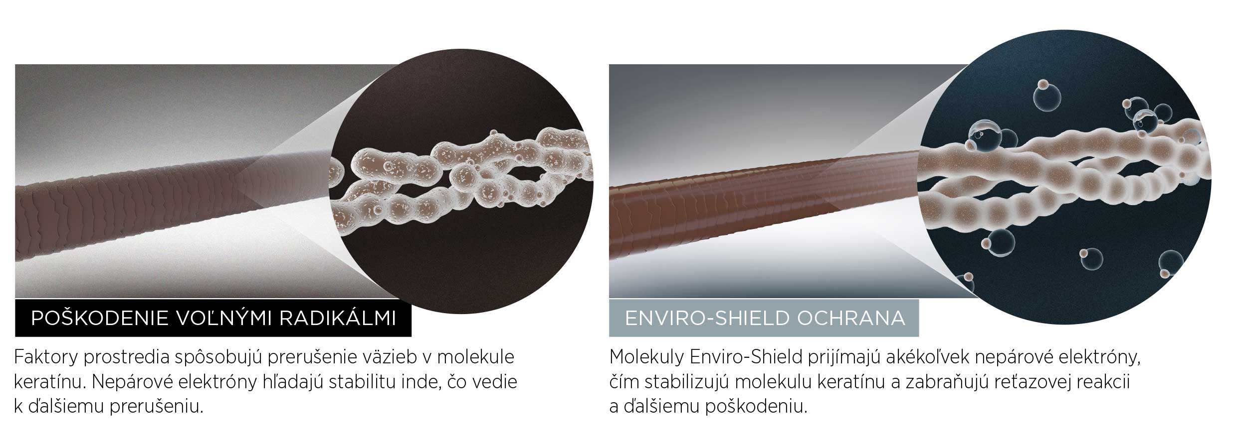 ENVIRO-SHIELD Technológia, ktorá chráni vlasy pred poškodením, voľnými radikálmi a zaisťuje im vitalitu a odolnosť.