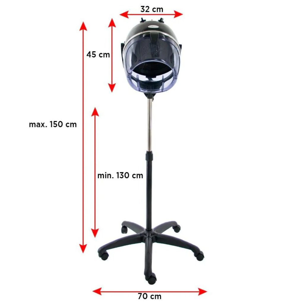 Gabbiano sušiaca helma na stojane s nastaviteľnou výškou a dvojitou rýchlosťou prúdenia vzduchu je neoddeliteľnou súčasťou každého kaderníckeho salónu. Disponuje nerezovými vykurovacími telesami, reguláciou teploty od 40 do 70 °C a časovačom od 0 do 60 minút, pričom výkon dosahuje 950 W. Rozmery balenia sú 41×41×47 cm.