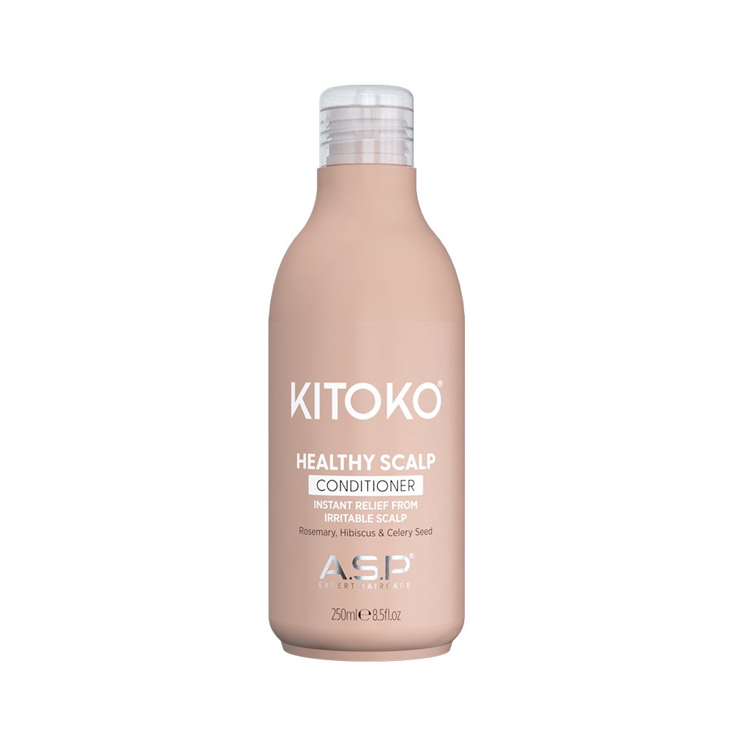 Pokračujte aplikáciou kondicionéra alebo tonika ASP Kitoko Healthy Scalp, ktoré pomáhajú upokojiť podráždenú pokožku hlavy a obnoviť jej rovnováhu. Nechajte pôsobiť niekoľko minút a opláchnite vlažnou vodou (pri použití tonika neoplachujte).
