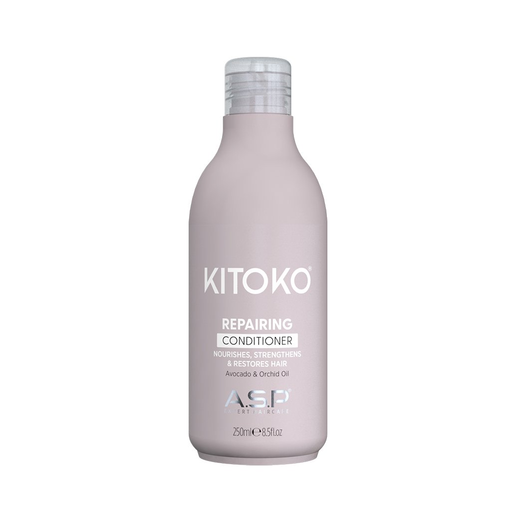 Pokračujte aplikáciou kondicionéra alebo masky ASP Kitoko Repairing, ktoré pomáhajú obnoviť poškodené vlasy a dopĺňajú ich potrebnú výživu. Nechajte pôsobiť niekoľko minút, potom opláchnite vlažnou vodou.