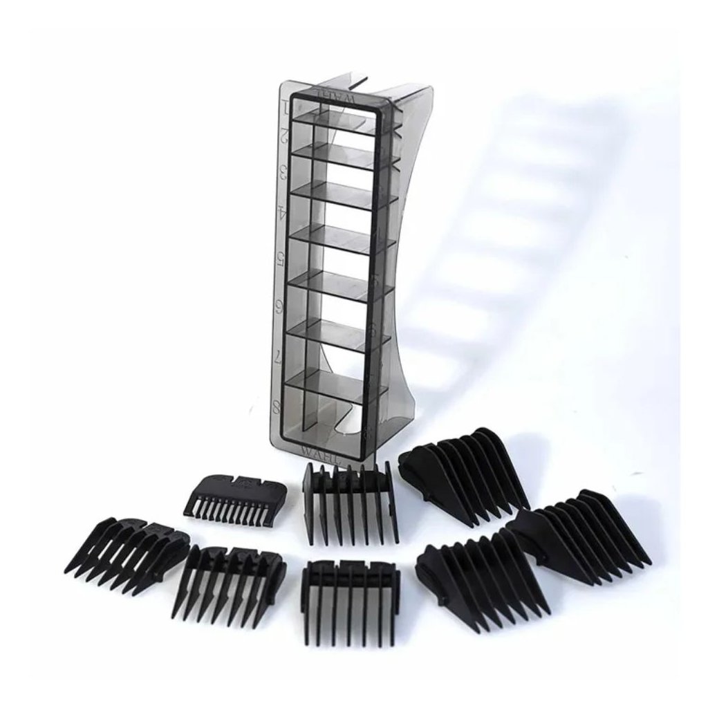 Vytvorte si požadovaný účes jednoducho a rýchlo s WAHL Black Cutting Guides. Každý nadstavec je navrhnutý tak, aby hladko prechádzal vlasmi a zabezpečil rýchle a presné strihanie, ktoré oceníte vy aj vaši zákazníci. Pre vaše pohodlie balenie obsahuje 8 hrebeňových nadstavcov v rozsahu od 3 mm do 25 mm, čo poskytuje širokú škálu možností pre dokonalý výsledok s maximálnou presnosťou. Súčasťou balenia je aj praktický organizér, ktorý pomáha udržiavať váš pracovný priestor uprataný a uľahčuje prenášanie. Kompatibilné so všetkými plnoformátovými strihacími hlavami WAHL okrem Competition Series a 5-in-1 Magic Blade.