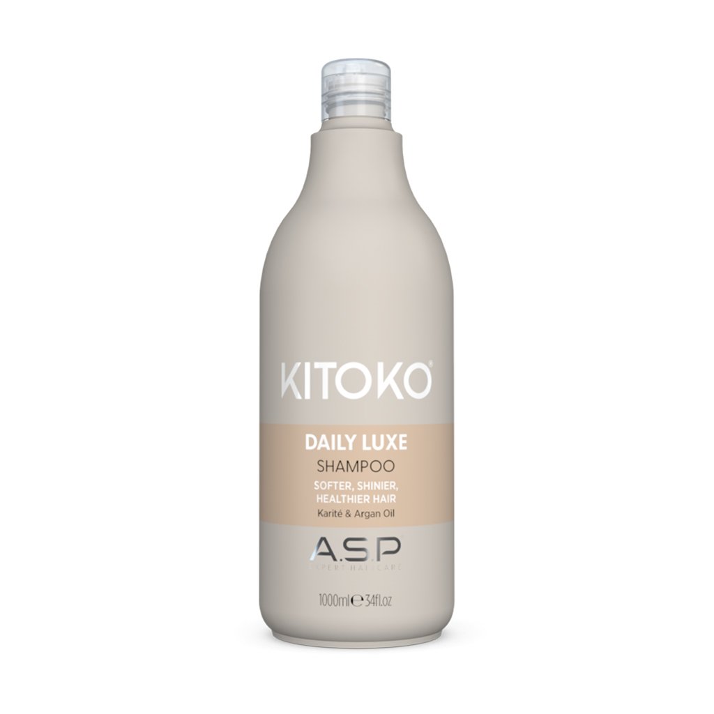 Naneste primerané množstvo šampónu ASP Kitoko Daily Luxe na mokré vlasy a jemne vmasírujte do pokožky hlavy, aby ste odstránili nečistoty a zároveň dodali vlasom výživu a hydratáciu. Dôkladne opláchnite a v prípade potreby postup zopakujte.